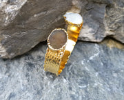 Bracelet with Brown Agate Gemstone and Real Pearls Gold Plated Brass Adjustable SR198