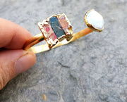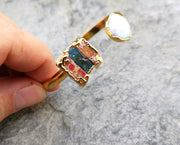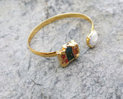 Bracelet with Colored Agate Gemstones and Real Pearl Gold Plated Brass Adjustable SR171