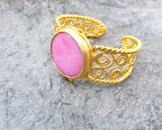 Bracelet with Pink Stone Gold Plated Brass Adjustable SR223