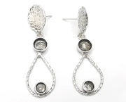 1 Pairs Drop Hammered Disc silver Dangle Earring Set Base Wire Antique Silver Plated Brass Earring Base (59x20mm)( 8 mm blanks) G26404
