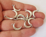 10 Crescent Moon Charms Double Sided Charms Antique Silver Plated Charms (18x10mm) G24621
