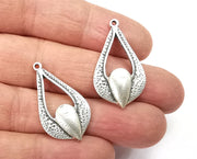 Silver Drop Charm Antique Silver Plated Charms (32x18mm) G27628