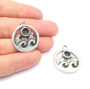 Wavy Sea Pendant Blank Resin Bezel Mounting Cabochon Base Setting Antique Silver Plated Charms (6mm Blank) G26747