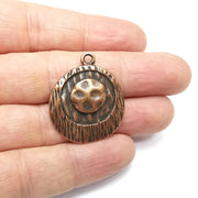 Hammered Mystic Charms, Round Charms, Ethnic Earring Charms, Copper Rustic Pendant, Necklace Parts, Antique Copper Plated 34x29mm G35062