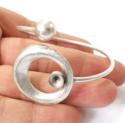 Silver ball bracelet brass cuff blank bezel Glass cabochon base Adjustable antique silver(8mm ) G27003