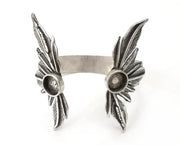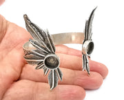 Feathers Bracelet Bezel Blank Resin Bezel Cabochon Cuff Base Settings Adjustable Bracelet Antique Silver Plated Brass (10mm Bezel) G33416