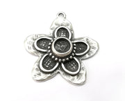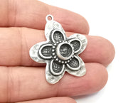 Flower Pendant Bezel, Resin Blank, inlay Mountings, Mosaic Frame, Cabochon Bases, Dry Flower Settings, Antique Silver Plated (6mm) G28882