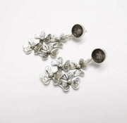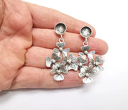 Flower Round Earring Set Base Wire Antique Silver Plated Brass