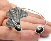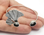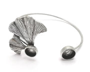 Ginkgo Leaf Bracelet Brass Cuff Blank Bezel Glass Cabochon Base Adjustable Antique Silver Plated Brass (10 and 8mm Blank ) G26937