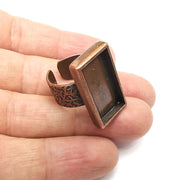 Copper Ring Setting, Cabochon Blank, Resin Bezel, Rectangle Ring Mounting, Epoxy Frame Base, Adjustable Antique Copper Plated 25x12mm G35192