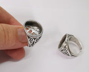 Signet ring blank setting Ring base bezel inlay ring backs Glass cabochon mounting Adjustable antique silver plated brass 16mm blank G24526