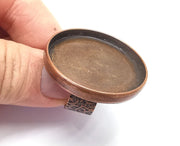 Round Ring Blank Setting, Cabochon Mounting, Adjustable Resin Ring Base, Inlay Ring Blank Mosaic Bezels Antique Copper Plated (35mm) G29678