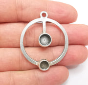 Round Charm Bezel, Resin Blank, inlay Mounting, Mosaic Pendant Frame, Cabochon Base Setting,Antique Silver Plated (8 and 6mm) G33835