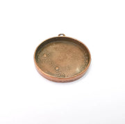 Round frame blank settings antique copper plated pendant are made of nickel free and lead free zinc alloy metal. Inner diameter : 30 mm, Size : 36x32 mm.