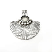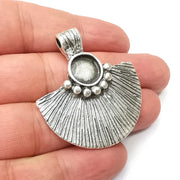 Ribbed pendant blank settings antique silver plated pendant are made of nickel free and lead free zinc alloy metal. Inner diameter : 11 mm, Size : 46x42 mm.