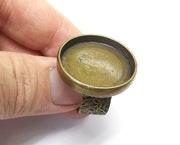 Round Ring, Ring Blank Setting, Cabochon Mounting, Adjustable Resin Base Bezels, Antique Bronze Plated (25mm) G29782