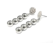 Disc Hammered Round Dangle Earring Set Base Wire Antique Silver Plated Brass
