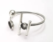 Rod Ball head silver bracelet brass cuff blank bezel Glass cabochon base Adjustable antique silver brass (14x10 and 8 mm blanks) G26289
