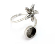 Starfish Ring Blanks, Resin Bezel Bases, Mosaic Mountings, Dry flower Frame, Insert Cabochon , Antique Silver Plated Brass (8mm) G28110