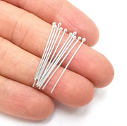 Sterling Silver Ball Head Pins 1.2'', 21ga (Length 1.2 inch -30mm) (Thickness 0,7mm - 21 Gauge) 925 Solid Silver Ball Head pin