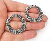 2 Ethnic circle charms Antique silver plated charms (38mm) G25989