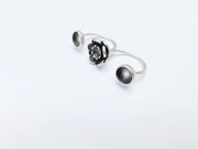 Create elegant and nature-inspired jewelry with this antique silver-plated adjustable cuff ring base. Featuring a detailed floral motif at its center and two bezel settings, this unique design allows you to add cabochons, resin, or gemstones to personalize your creations. The adjustable open design ensures a comfortable fit for various sizes, making it perfect for statement rings or everyday accessories. Crafted with high-quality materials, this ring base combines durability with artistic charm for your handmade jewelry projects.