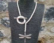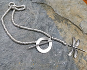 Dragonfly Necklace Antique Silver Plated Metal Adjustable SR340