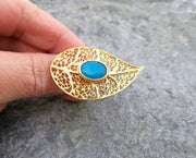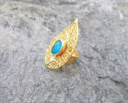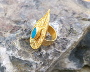 Eye Ring with Blue Gemstone Gold Plated Brass Adjustable SR92