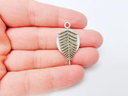 Fern Leaf Charm Pendant, Nature Charm, Botanical Jewelry Supplies, Forest Leaf Necklace, Fern Earring, Antique Silver Plated 34x18mm G37320