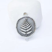 Antique silver plated Fern Connector Charm, featuring a detailed fern leaf design with two loops for versatile use, perfect for bracelets, necklaces, earrings, and DIY jewelry projects.