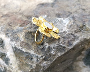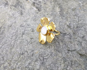 Flower Ring with Real Pearl Gold Plated Brass Adjustable SR104