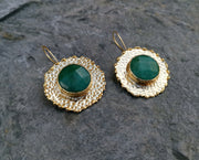 Gold Plated Brass Earrings with Green Gemstones SR52
