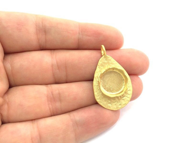 Gold Plated Brass Hammered Pendant Setting Mountings Blanks ( 14mm blank ) G6051