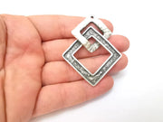 Square Dangle Charms, Boho Charms, Earring Charms, Silver Rustic Pendant, Necklace Parts, Antique Silver Plated Zamac 64x52mm G36448