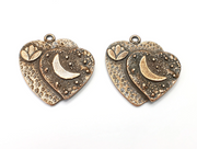 Heart Lotus Flower Charms Moon Stars Sky Pendant Antique Copper Plated