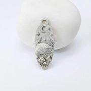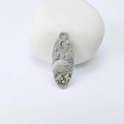 This double sided hedgehog pendant offers intricate detailing on both sides, making it ideal for designs where both surfaces are visible. The combination of forest elements and celestial details creates a strong storytelling piece for boho, rustic, and woodland-themed jewelry collections.