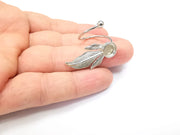 Shiny Silver Leaf Ring Setting, Cabochon Blank, Resin Bezel, Ring Mounting, Epoxy Frame Base, Adjustable Rhodium Plated Brass 8mm G35640