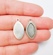 2 Marquise Charm Bezel, Resin Blank, inlay Mounting, Mosaic Pendant Frame, Cabochon Base,Dry Flower Setting, Antique Silver (18x10mm) G37043