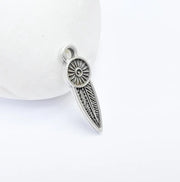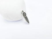 This antique silver-plated pendant features a stunning combination of a detailed feather design and a radiant sunburst motif. Perfect for boho, tribal, or vintage-inspired jewelry projects, this unique charm adds elegance and meaning to your creations. Use it to craft necklaces, earrings, or bracelets that stand out with artistic flair. Made with high-quality materials, this pendant ensures durability and a lasting finish, making it ideal for both everyday wear and special occasions.