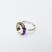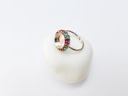 This adjustable shiny silver plated ring features an elegant design with a bezel setting surrounded by Colorful crystals. The open band makes it easy to fit various finger sizes comfortably. The oval bezel is perfect for customization with resin, glass, or natural stones. A great choice for jewelry makers and handmade jewelry lovers. Whether for yourself or a special gift, this ring base allows you to create a meaningful and unique piece.