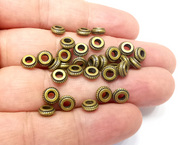 Ribbed Round Beads Antique Bronze Plated