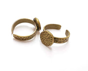 Ring Blank Setting Hammered Ring Base Bezel Ring Backs Glass Cabochon Mounting Adjustable Antique Bronze Plated Ring (11mm ) G20074