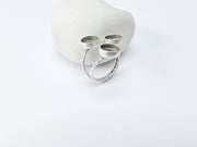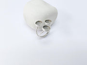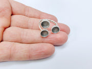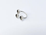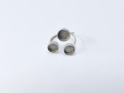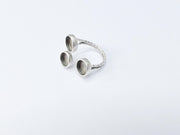 This adjustable ring base features three round bezel settings, ideal for your DIY jewelry projects. Each cup is designed to hold small cabochons, resin inlays, or miniature artworks. Crafted from durable brass and finished with antique silver plating, it offers a rustic yet timeless look. The hammered band adds a stylish touch, making it a great choice for creating unique and personalized jewelry pieces.