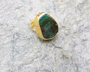 Ring with Green Agate Gemstone Gold Plated Brass Adjustable SR206