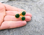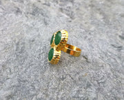 Ring with Three Green Gemstones Gold Plated Brass Adjustable SR93