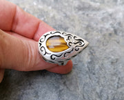 Ring with Tiger Eye Gemstone Antique Silver Plated Brass Adjustable SR267