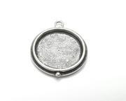 Round frame blank settings antique silver plated pendant are made of nickel free and lead free zinc alloy metal. Inner diameter : 24 mm, Size : 36x29 mm.