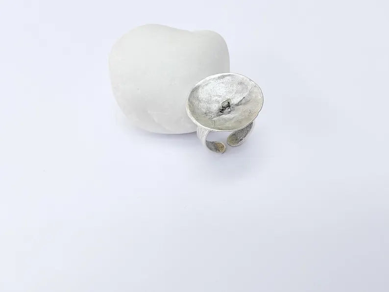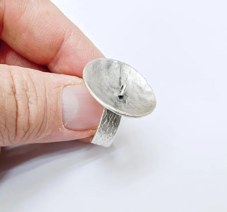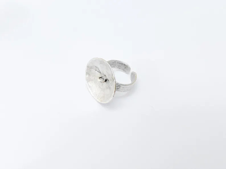 Create beautiful custom rings with this antique silver plated adjustable ring base. Featuring a round bezel setting, this blank ring allows you to easily mount gemstones, crystals, resin creations, or polymer clay designs to craft stunning personalized jewelry. Its adjustable design ensures a comfortable fit for most finger sizes. Made with premium materials, it's durable, stylish, and perfect for DIY jewelry makers seeking a versatile and elegant ring base