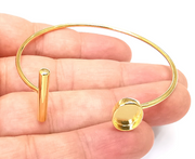 Shiny Gold Oval Bracelet Blanks, Cuff Bezels Cabochon Bases Resin Mountings, Cuff Frame, Adjustable Gold Plated Brass