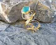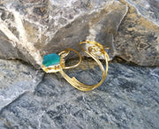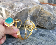 Gold Plated Brass Bracelet with Green Agate Gemstone Adjustable SR17